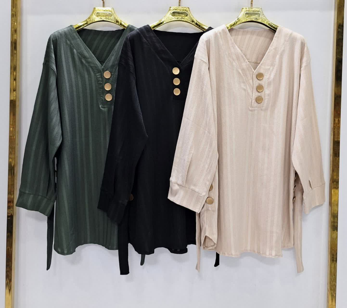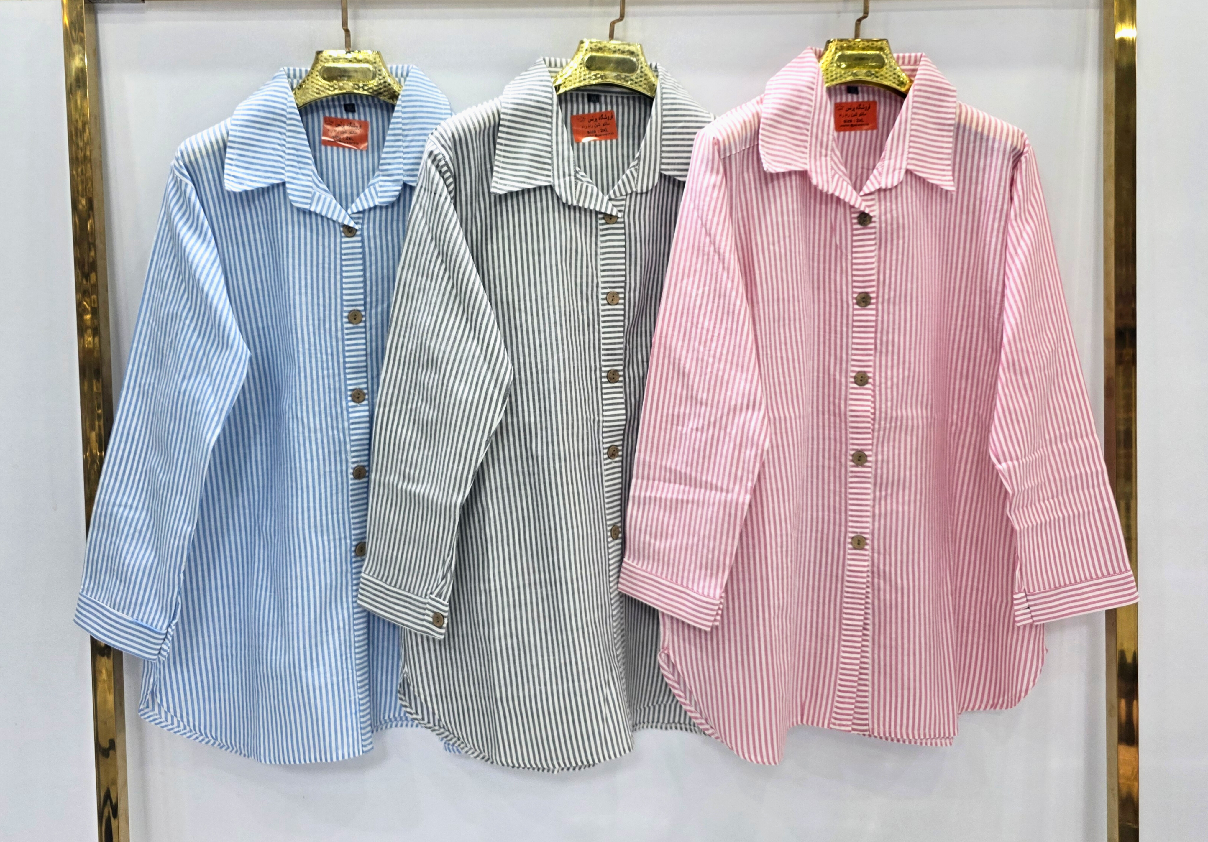 شومیز طرح راه راه جلو دکمه دار جنس نخی