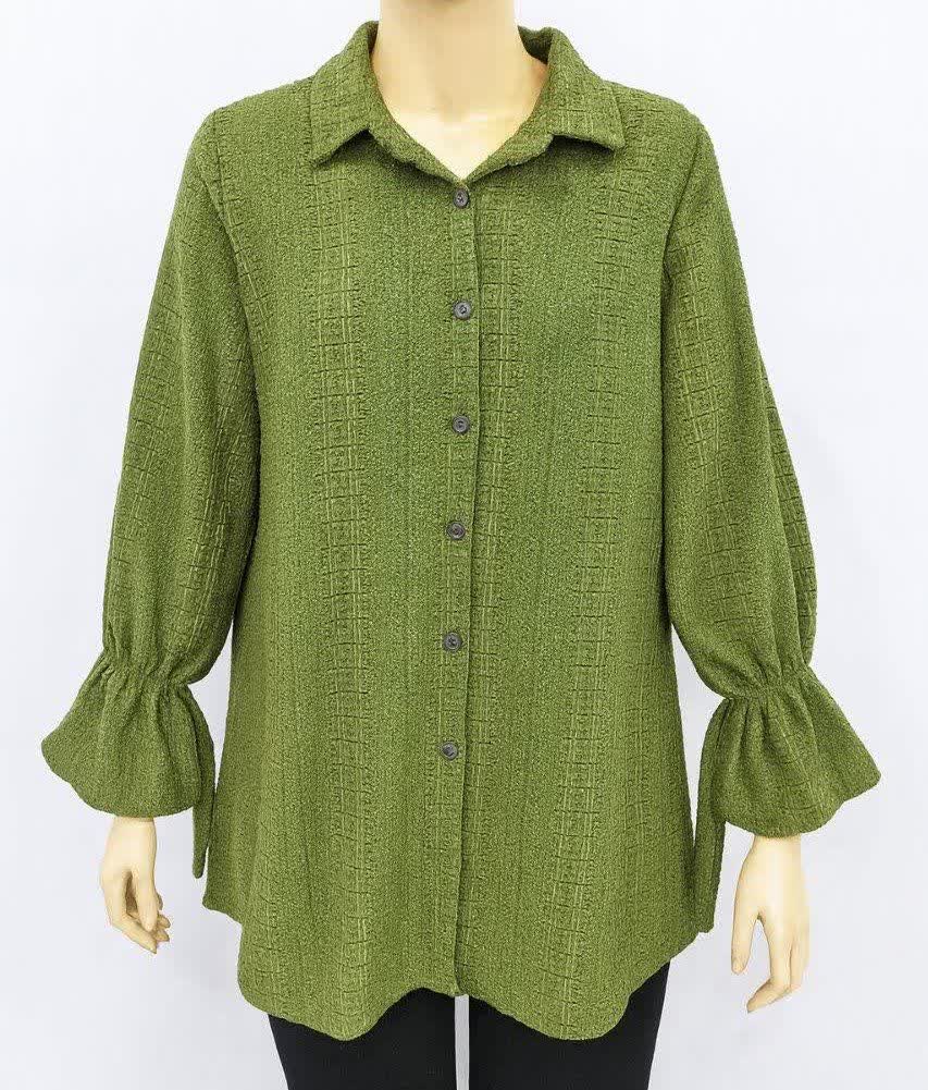 شومیز جلو دکمه آستین چین دار جنس مراکشی