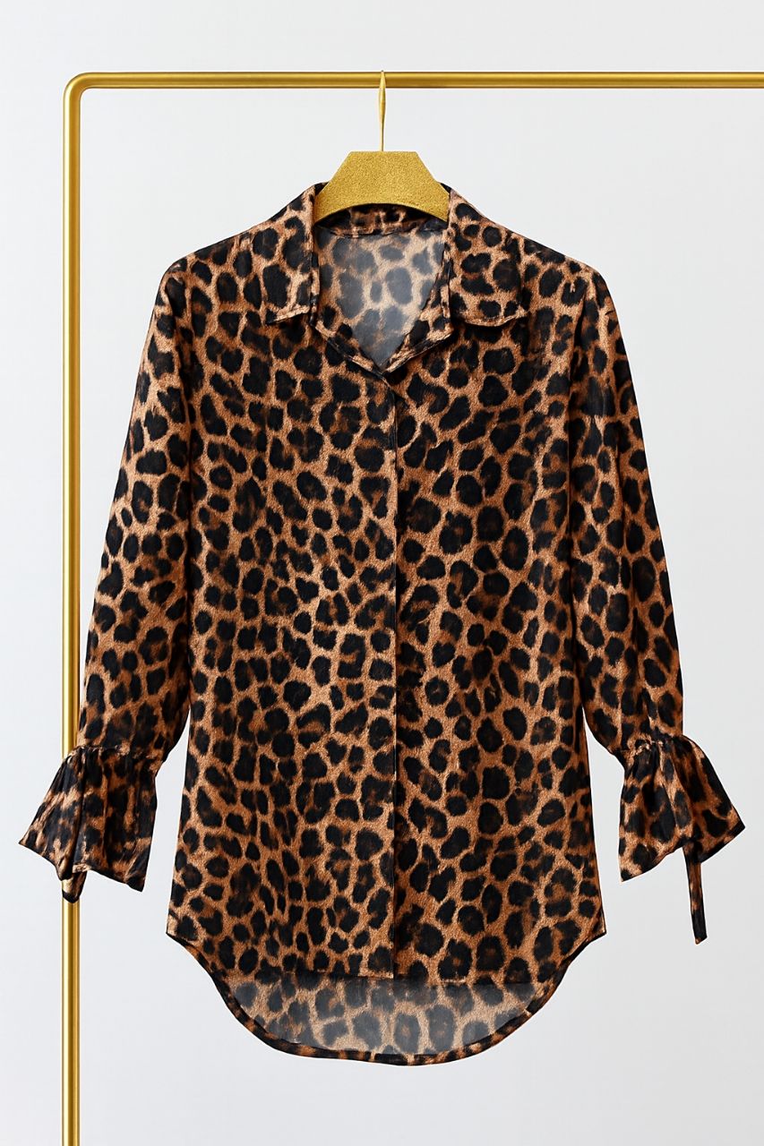 شومیز آستین چین دار طرح پلنگی جنس بوگاتی