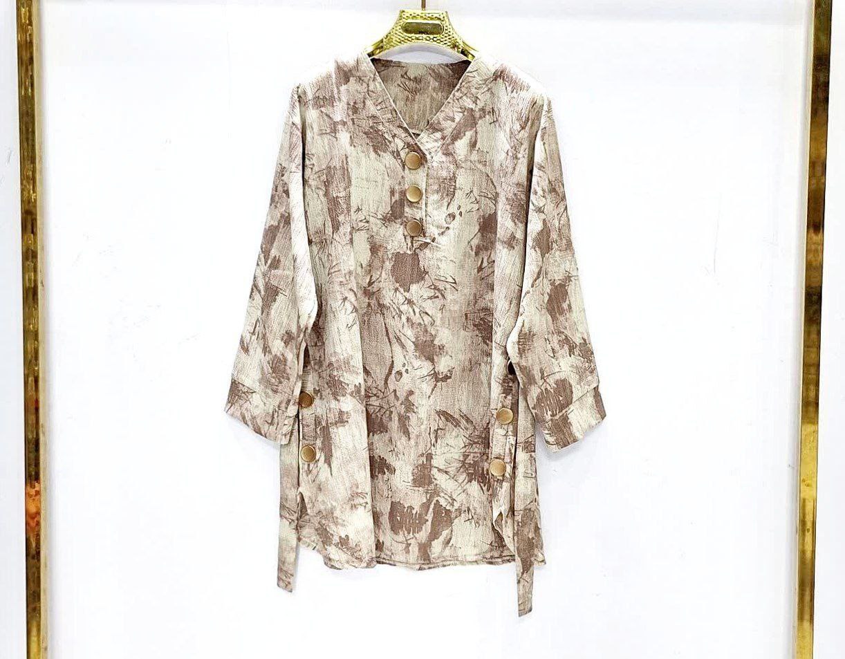 شومیز زنانه طرح آبرنگی جلو بسته یقه دلبری فریسایز | مناسب سایز 46 و 48